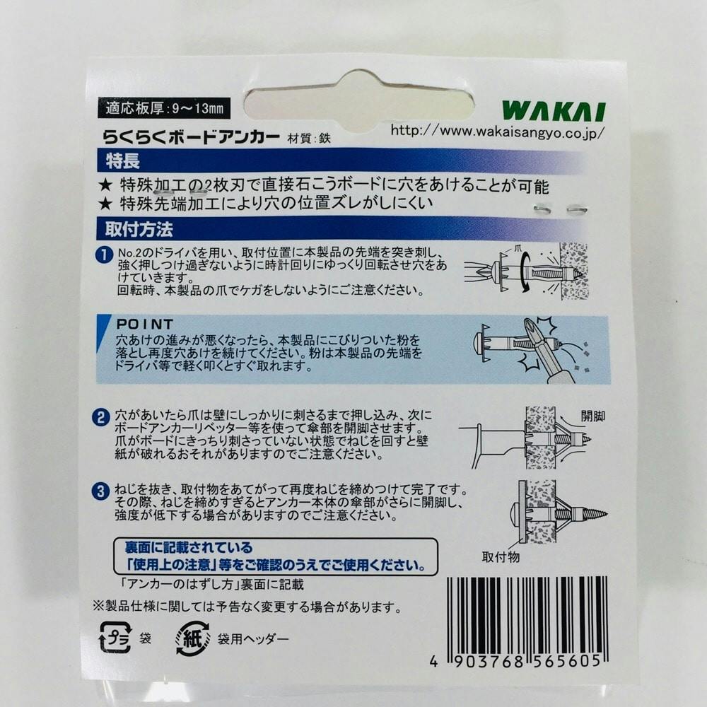 WAKAI らくらくボードアンカー 石膏ボード壁用アンカー RBA412D 8本入