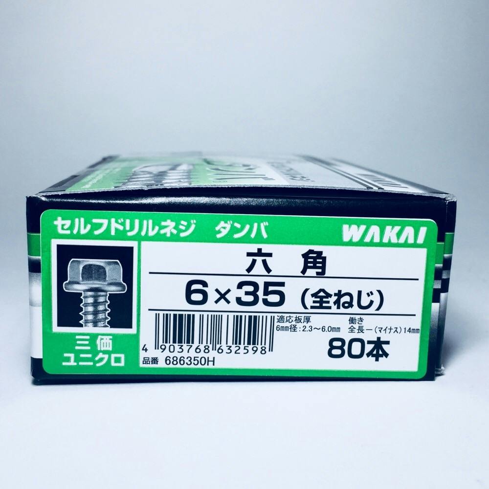 WAKAI セルフドリルネジ ダンバ コンパクトボックス 六角 全ねじ 三価ユニクロ 6×35mm 80本入 箱