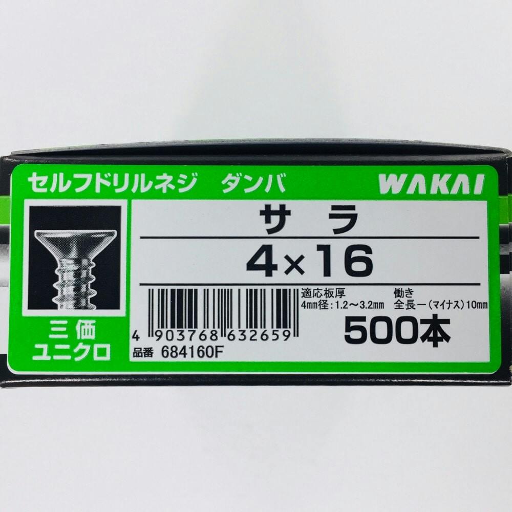 WAKAI セルフドリルネジ ダンバ コンパクトボックス サラ 三価ユニクロ 4×16mm 500本入 箱