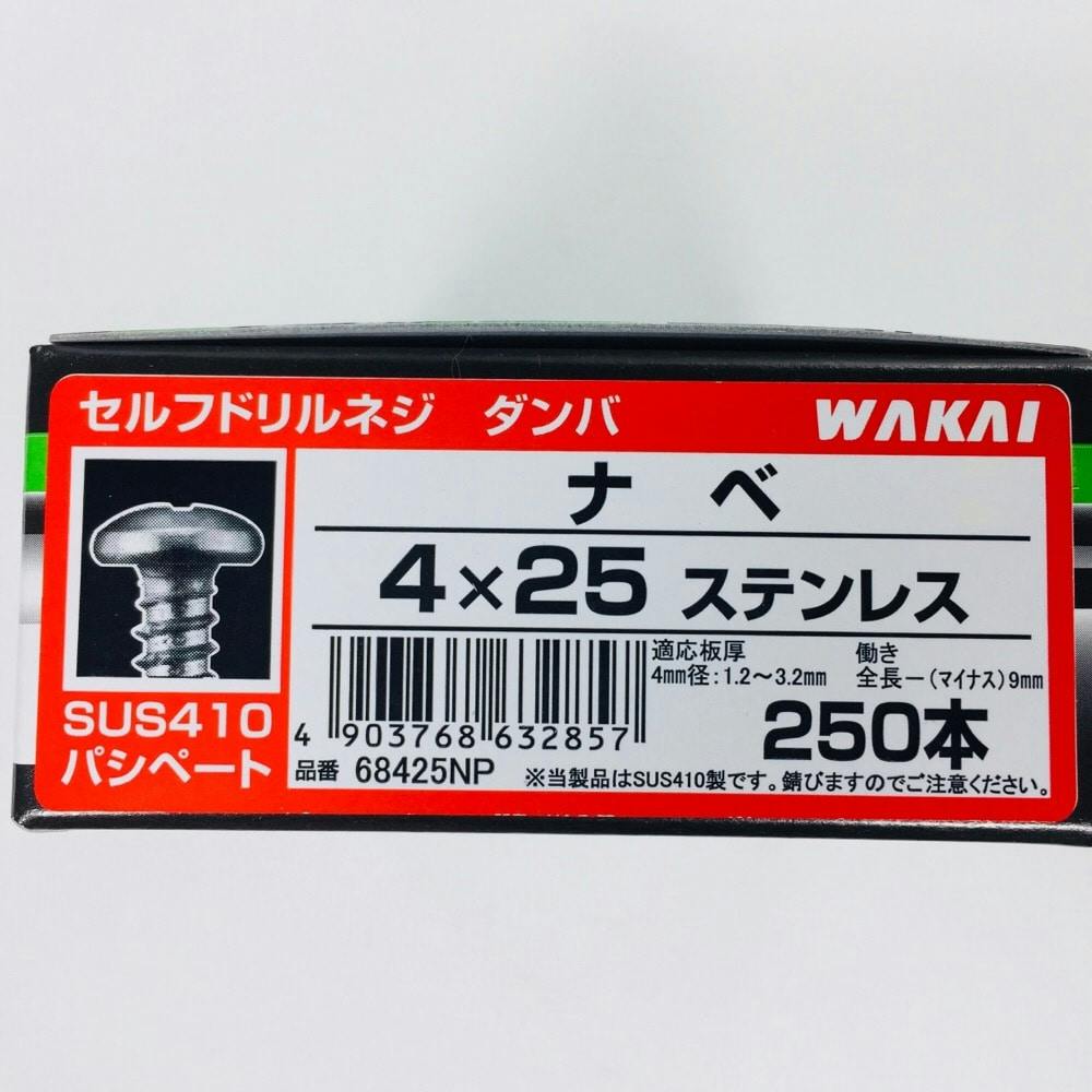 WAKAI セルフドリルネジ ダンバ コンパクトボックス ナベ ペパシート ステンレス 4×25mm 250本入