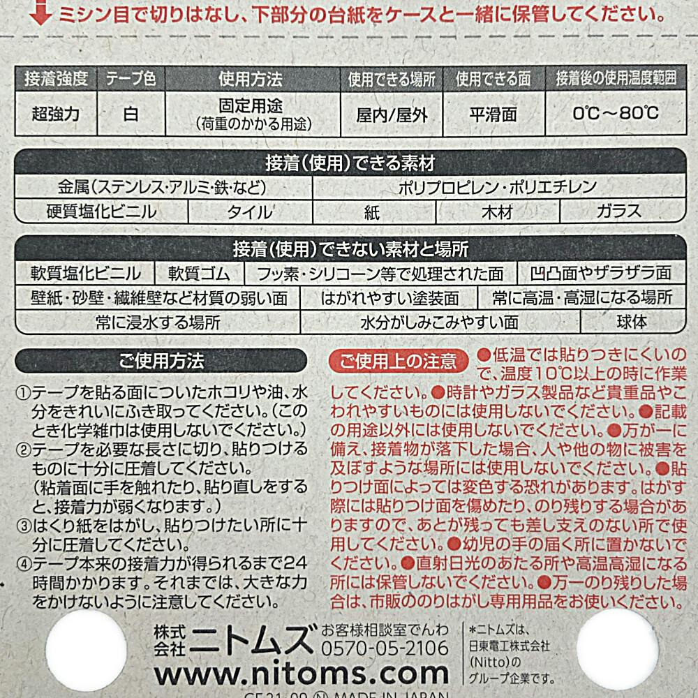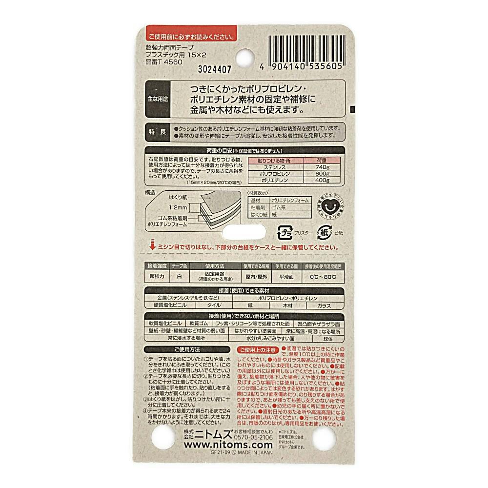 ニトムズ 超強力 両面テープ プラスチック用 T4560 厚さ1.2mm×幅15mm×長さ2m