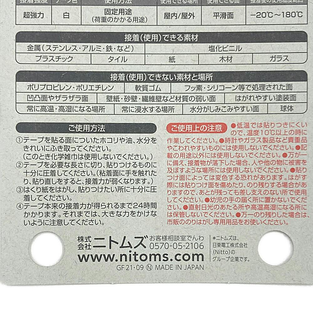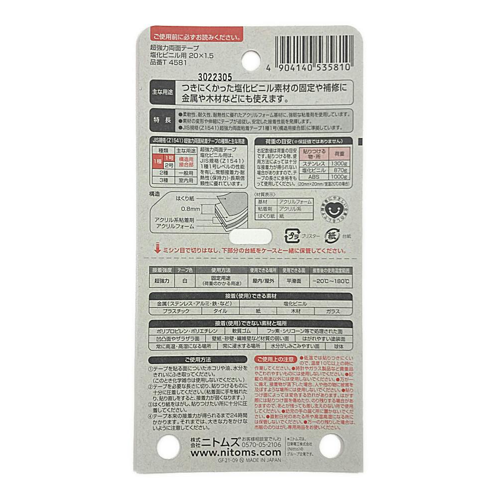ニトムズ 超強力 両面テープ 塩化ビニル用 T4581 厚さ0.8mm×幅20mm×長さ1.5m