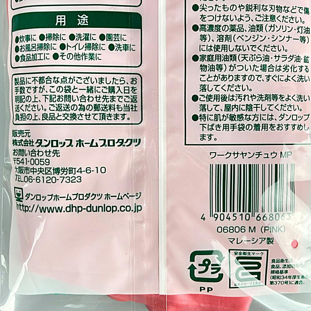 中厚手ゴム手袋 ワークサヤン M ピンク