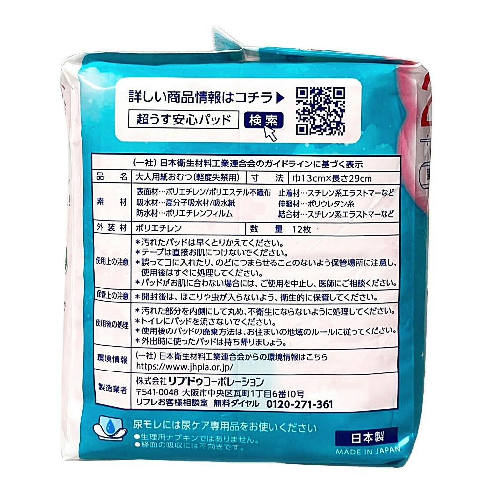 リフレ 超うす安心パッド 羽つき 特に多い時も快適用 210cc 12枚