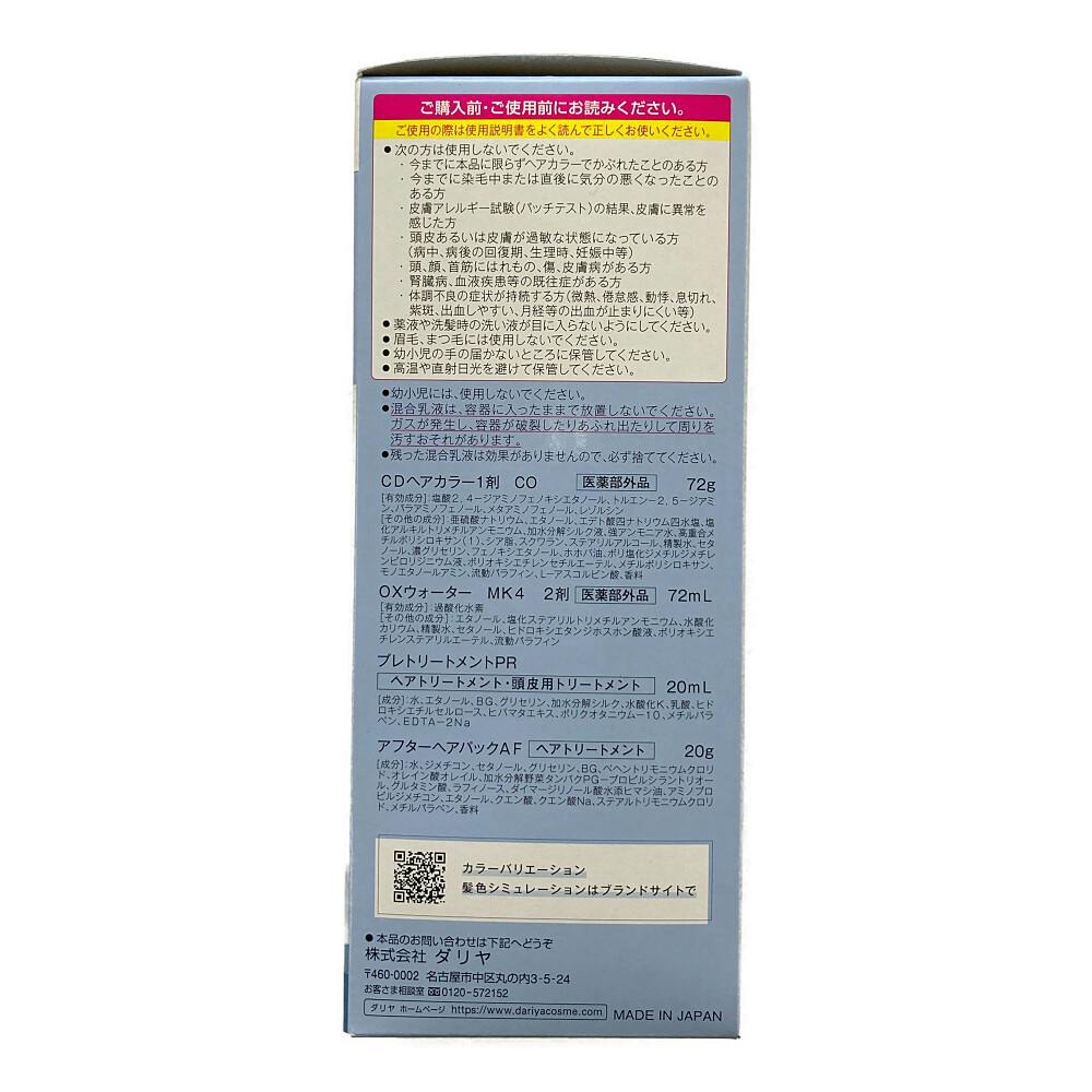 ●こなれた雰囲気で洗練度アップ ●白髪が多めの方はしっかりと染まらないことがあります ●ツヤと潤いのある髪色続く/4種のトリートメント成分配合 ●Wトリートメントで保護しながらキレイな髪へ