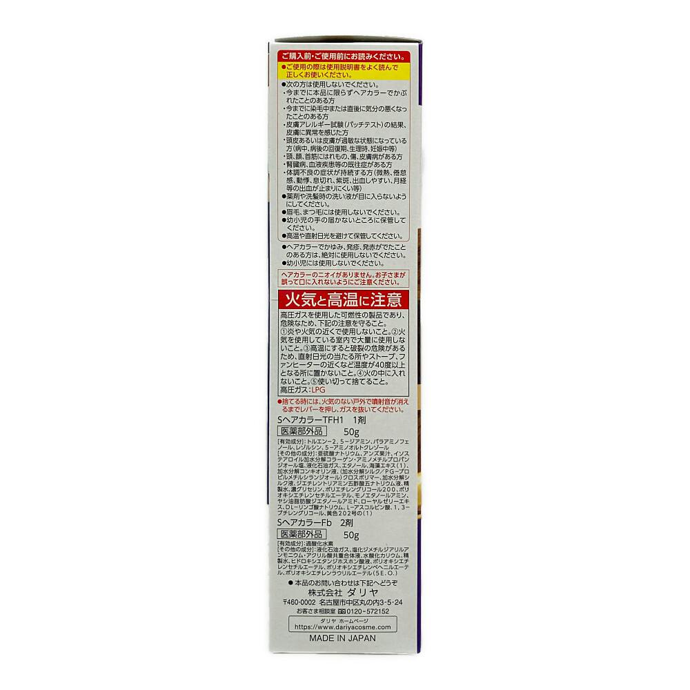 ●1剤/有効成分:トルエン-2,5-ジアミン、パラアミノフェノール、レゾルシン、など ●2剤/有効成分:過酸化水素、その他の成分:液化石油ガス、塩化ジメチルジアリルアンモニウム・アクリル酸共重合体液、など