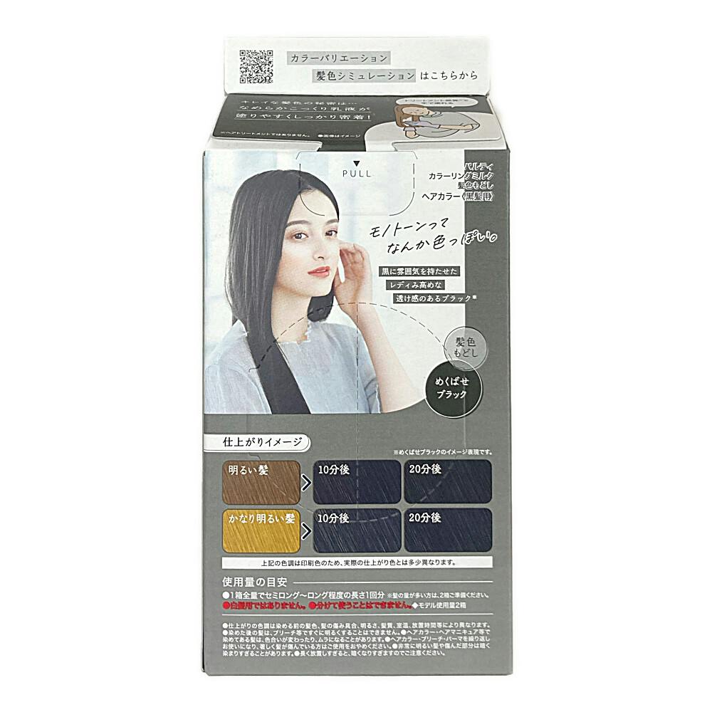 ●キレイな髪色の秘密は・・・なめらかこっくり乳液が塗りやすくしっかり密着! ●トリートメント感覚で手で塗れる ●黒に雰囲気を持たせたレディみ高めな透け感のあるブラック ●色持ち成分/シルクプロテイン ●つややか成分/アーモンドオイル、グレードシールドオイル
