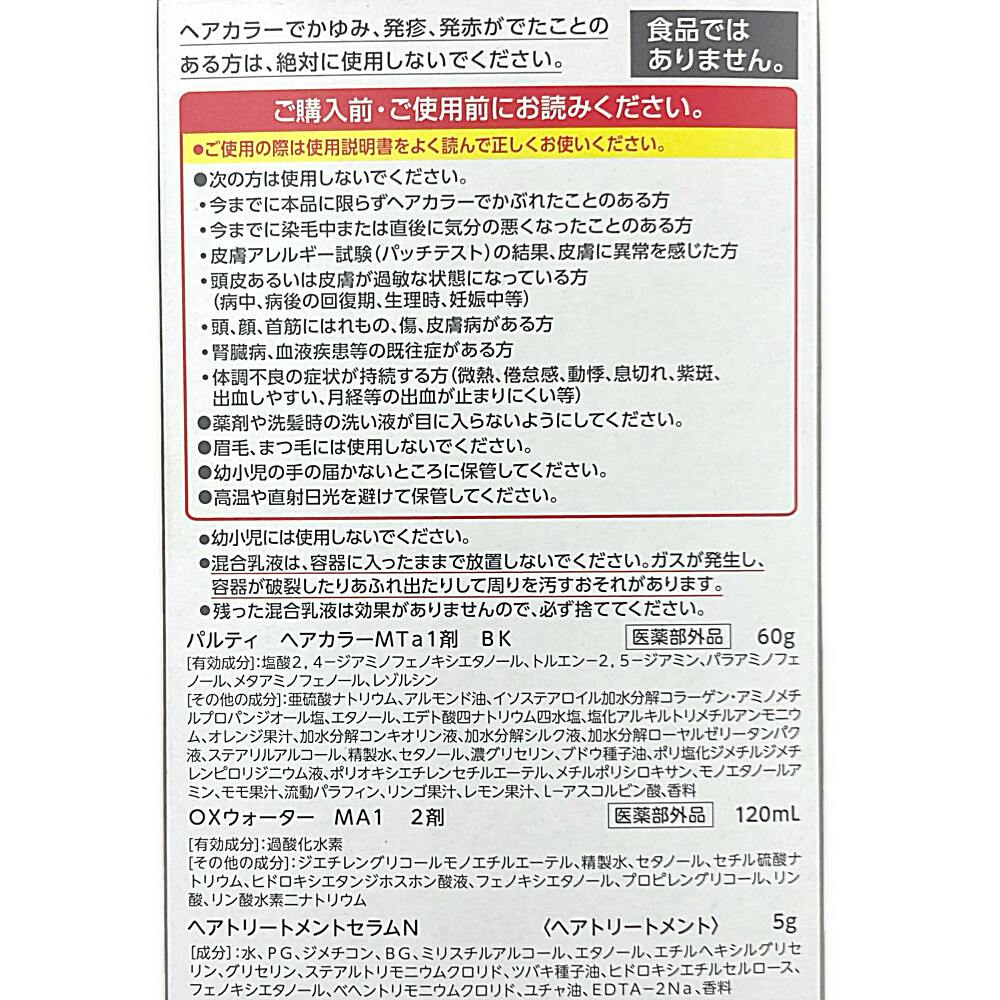ヘアカラーMTa1剤 BK:60g、OXウォーター MA1 2剤:120mL、ヘアトリートメントセラムN:5g