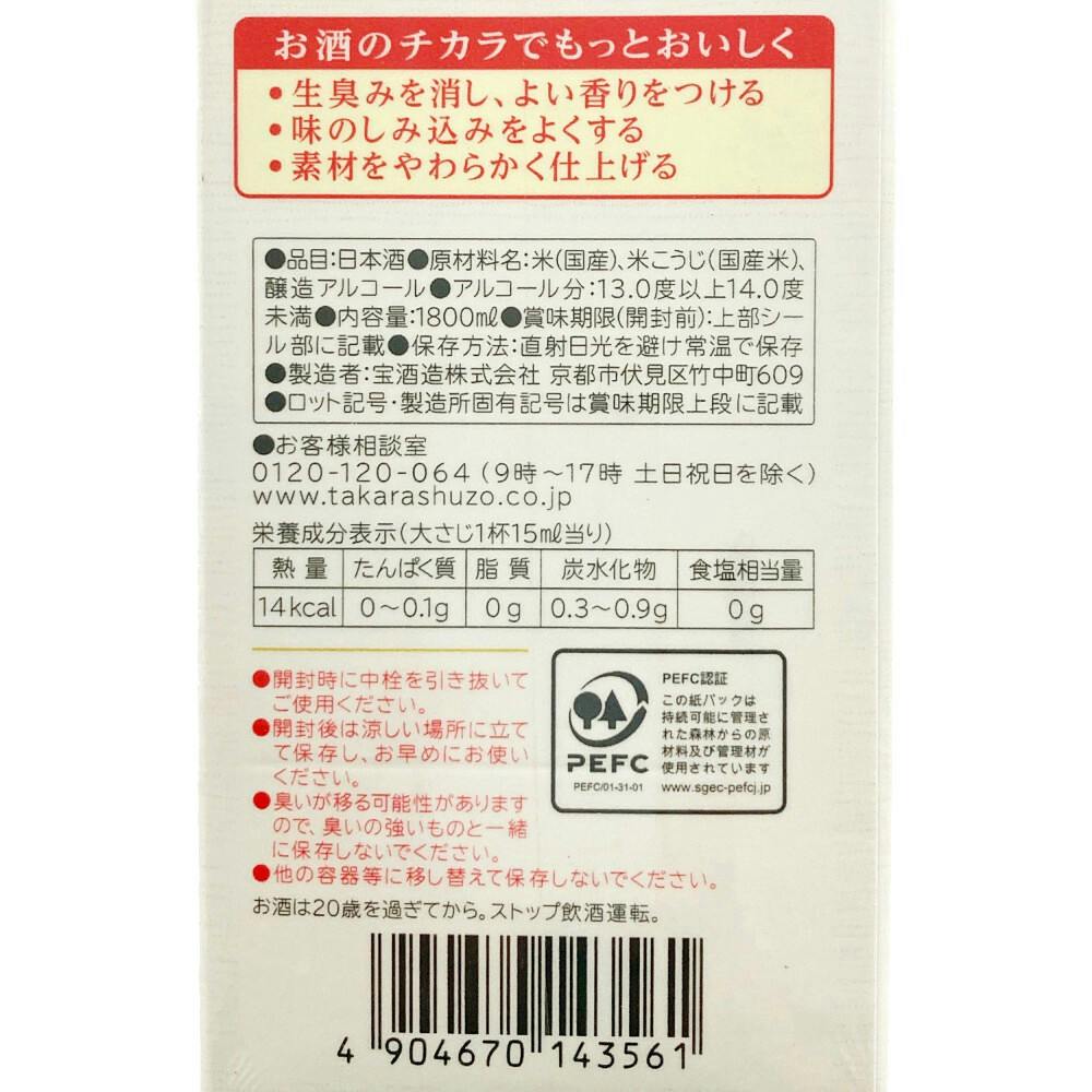 タカラ「料理のための清酒」1.8L紙パック