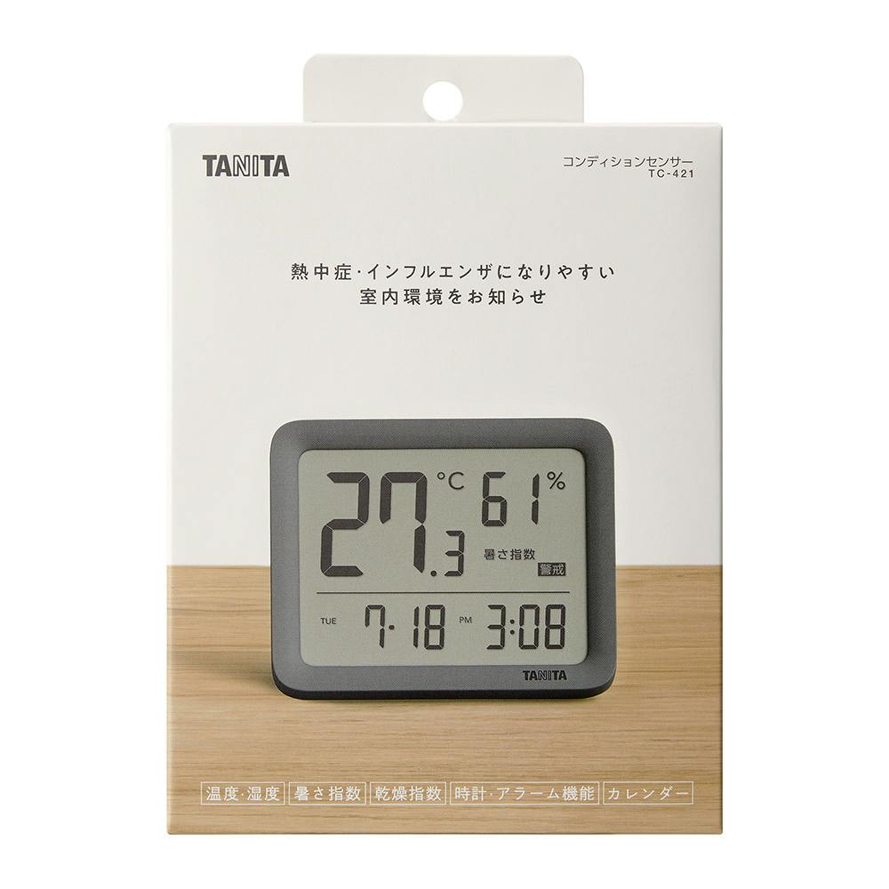 タニタ 温湿度計時計 ダークグレー TC421DG