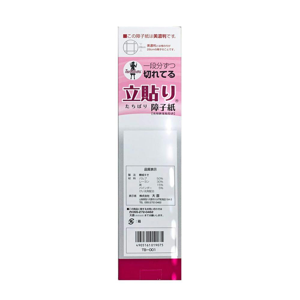 立貼り障子紙は、幅28cm×長さ94cmに切れています。付属の紙管に巻き付けて一段ずつ貼ります。立ったまま貼れるので、広いスペースも必要なく、作業も楽です。