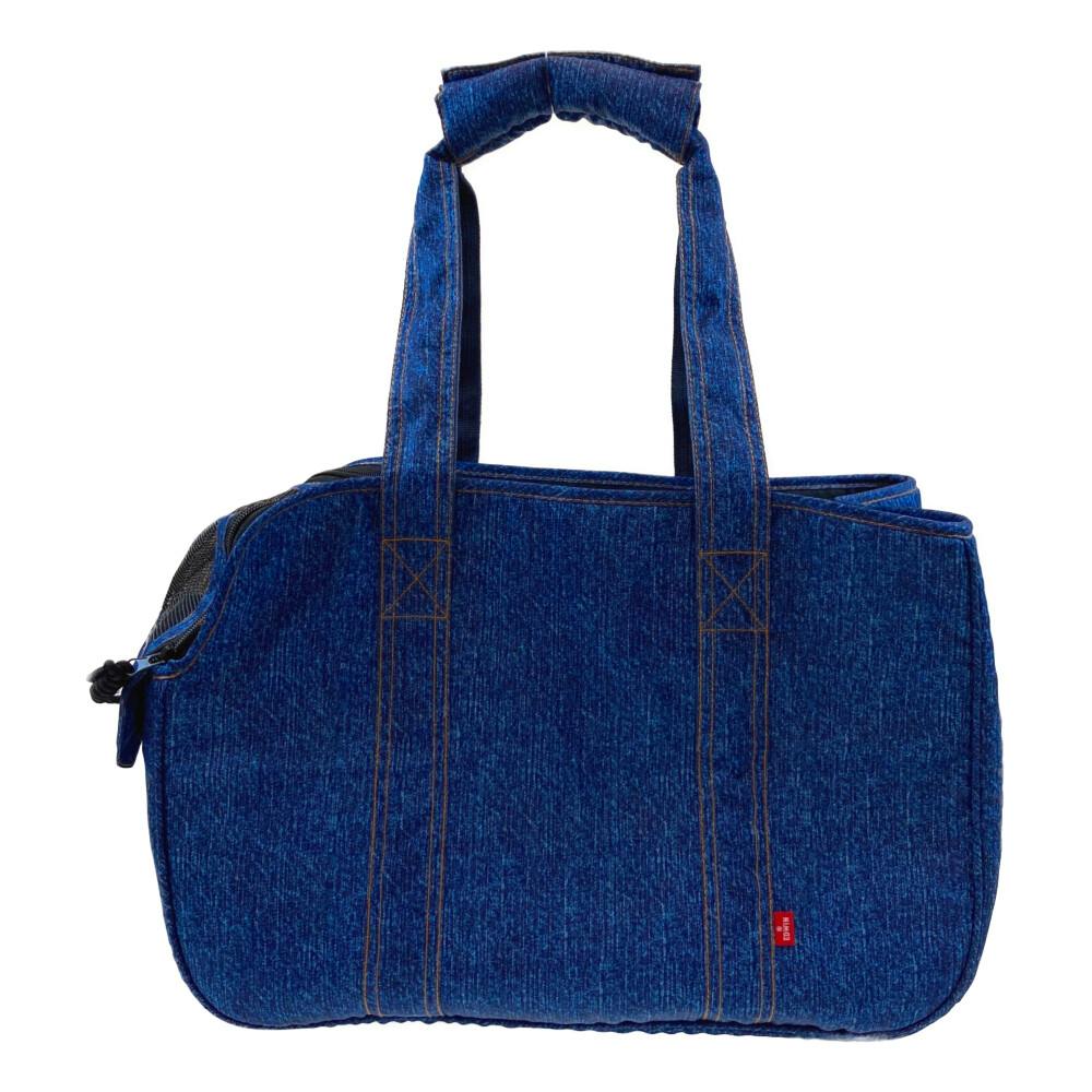 ブランドのペット用キャリーバッグデニム風デザインファスナーベルトで一気に開閉消臭&抗菌タグでワンちゃんも快適飛び出し防止リード付ペットシーツ留め要バンド付保冷剤ポケット付