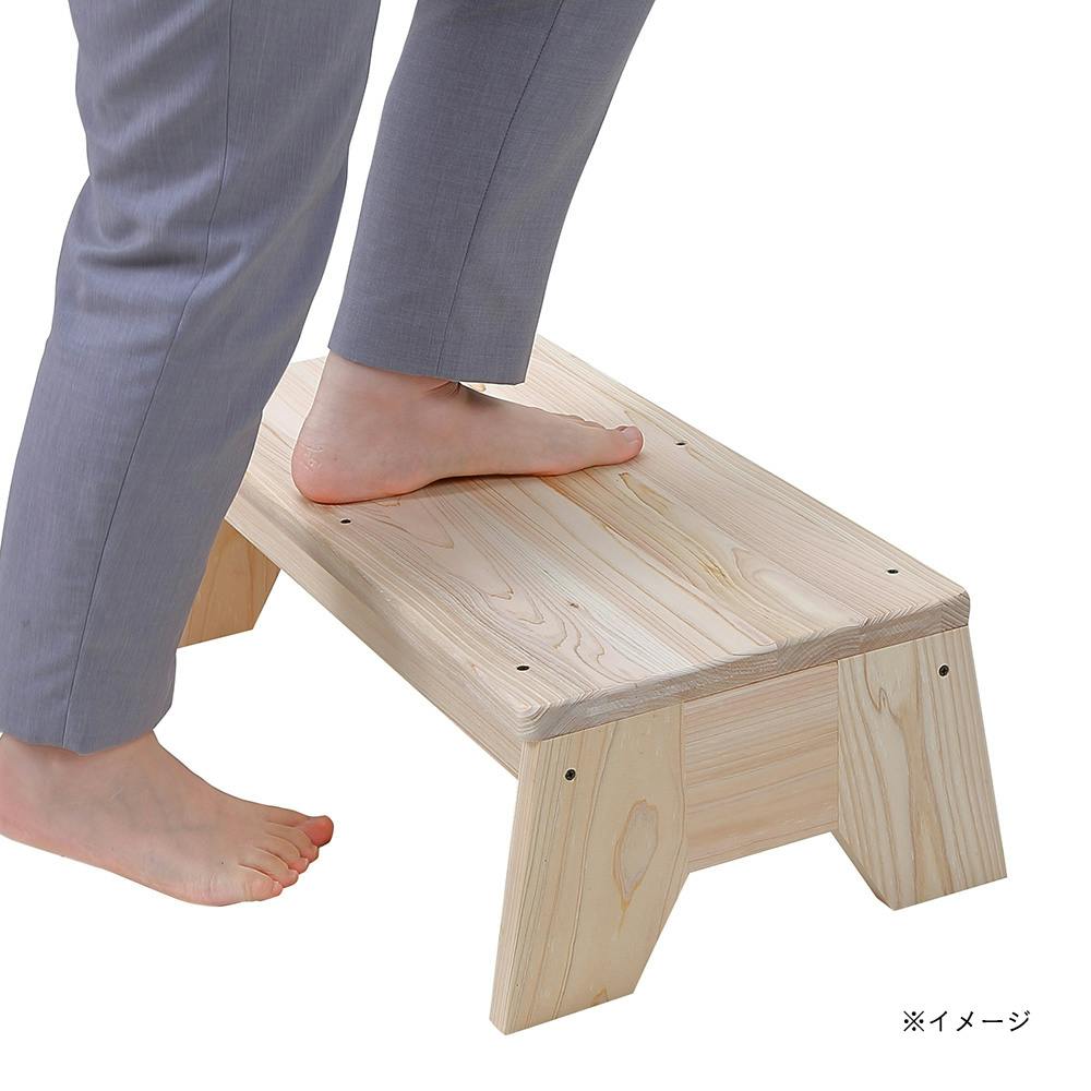 踏み台を持ってくるほどではないけど、ちょっと届かない高いところにあるものを取る時や踏み台昇降運動をする際にご使用頂けます。弾性に優れた桧材を使用しているため、安心してご使用頂けます。