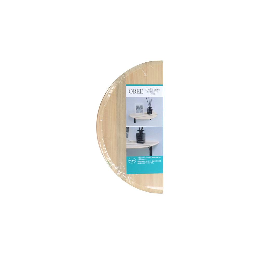 国産ひのきに広葉樹を挟んだOBEEシリーズの半円型棚板。アクセントとなる広葉樹の帯がシンプルで高級感を演出します。3