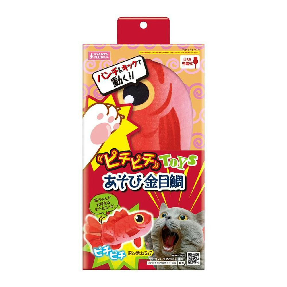 猫ちゃんの狩猟本能を刺激するかわいい金目鯛のおもちゃです。 USB充電式でたたくとピチピチ跳ねます。 猫ちゃんが大好きなまたたび付きです。