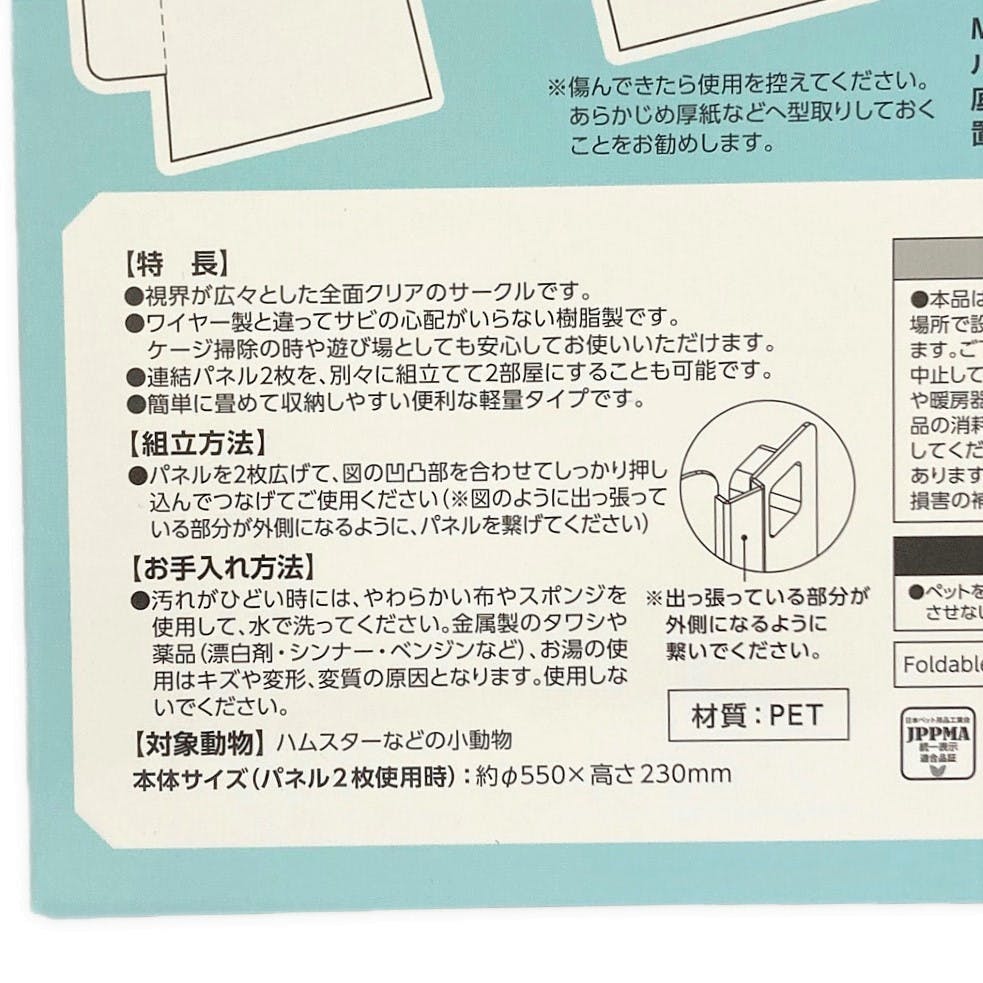 ●折りたたみ式全面クリアな樹脂タイプのサークルです。 ●別々に組み立てて2部屋にすることも可能です。 ●お散歩や運動・お掃除の時におすすめです。 ●たたむとコンパクトになるため、収納が楽々です。