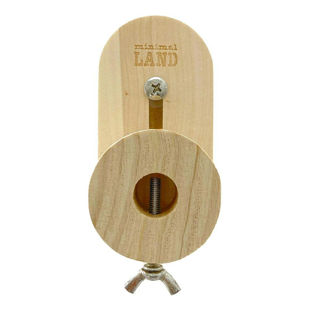 1.別売の「果実って小枝」を丸い穴に差し込みます 2.本体下部の蝶ネジを軽く締めて固定してください 3.裏面図のようにケージのスリットやワイヤーに木ネジを締めて固定してください