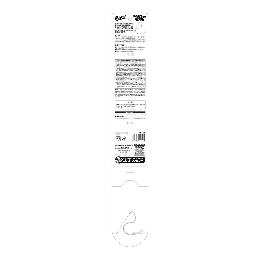 伸縮チューブの予測不能な動きが、狩猟本能を刺激! 猫ちゃんが大好きなオーロラフィルムのカシャカシャ音と鈴の音が重なり、猫ちゃんを夢中にさせます。
