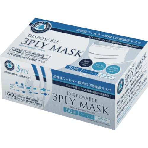 【CAINZ-DASH】川西工業 使いきり三層式マスク50枚入 7032W【別送品】