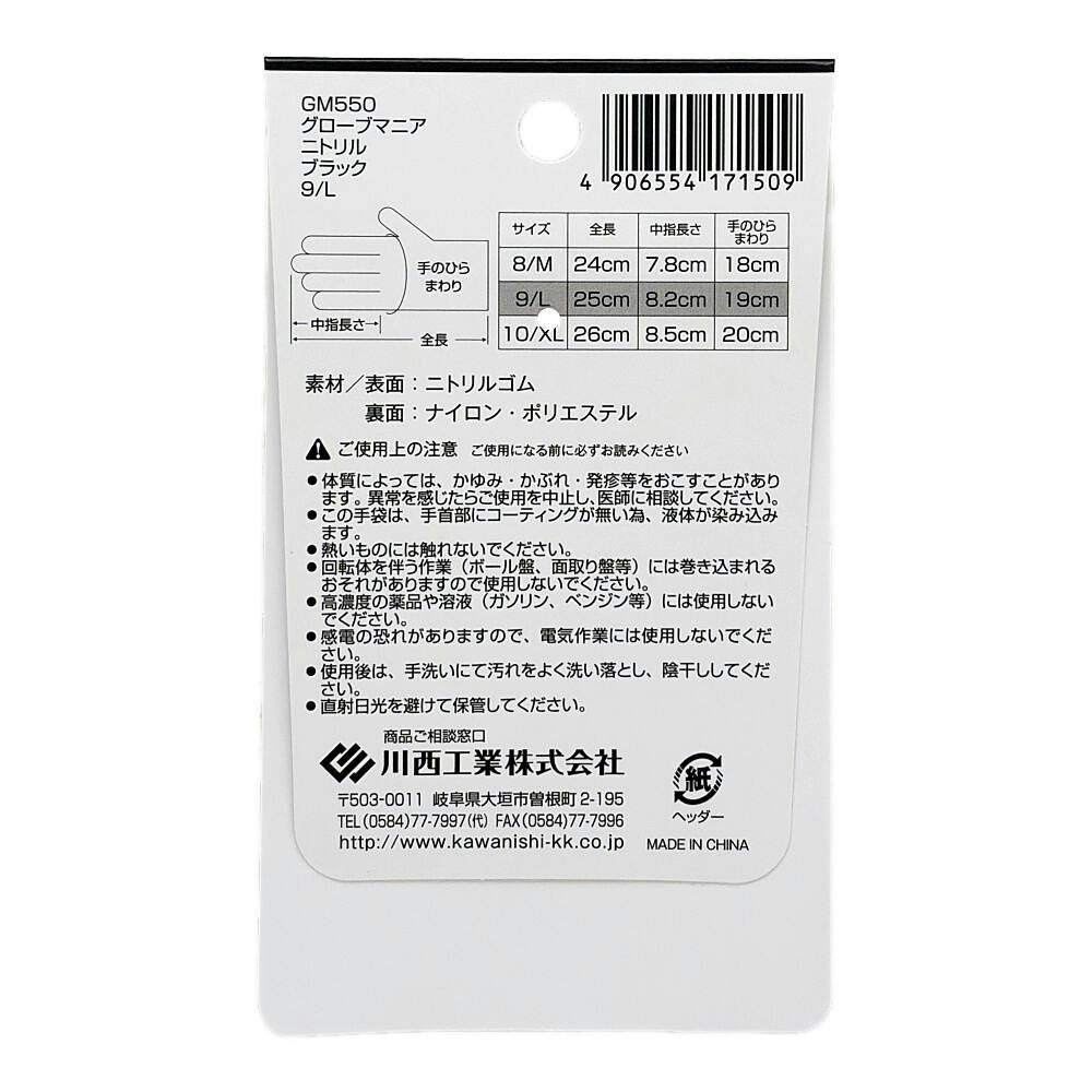 ●表面/ニトリルゴム ●裏面/ナイロン・ポリエステル