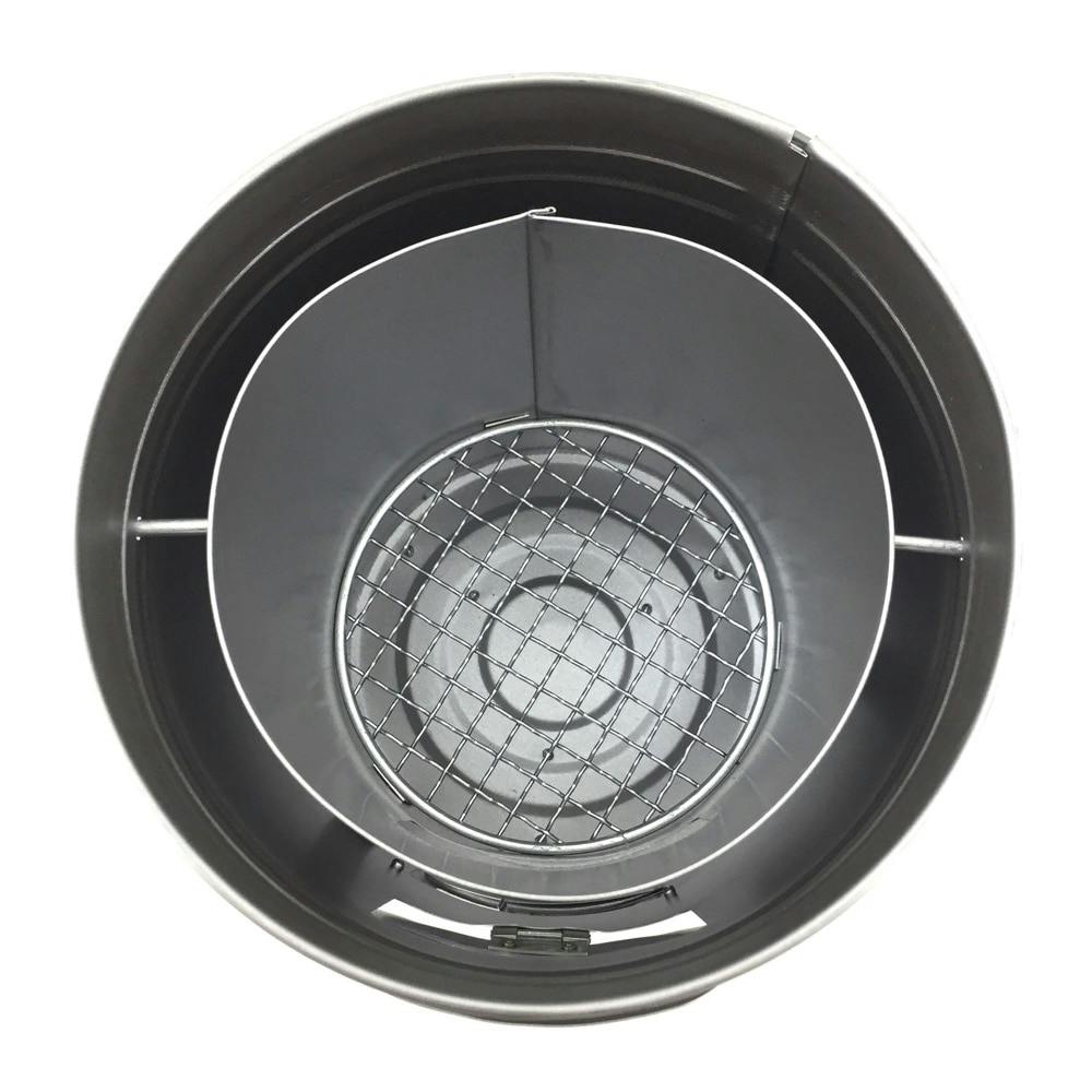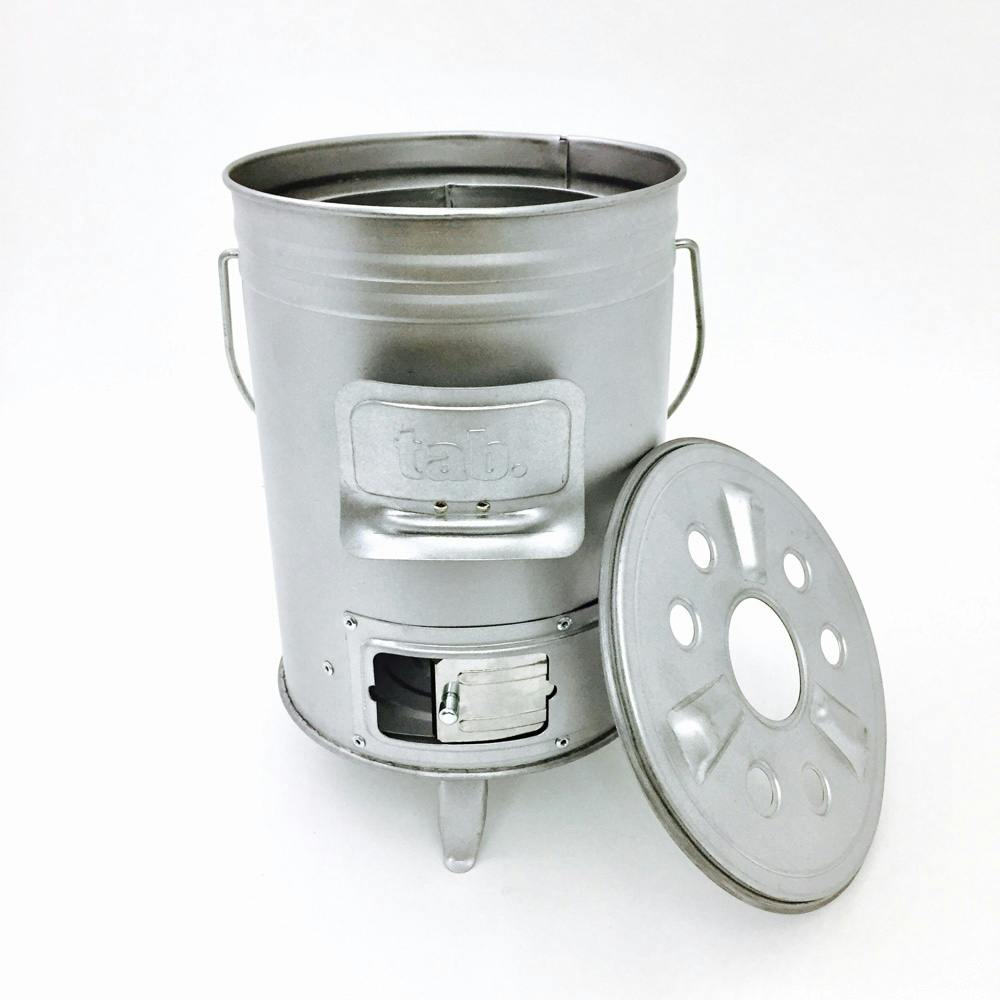 蓋を取り、燃料を入れ、着火口から点火。吸気口の開閉で火力調整ができる。