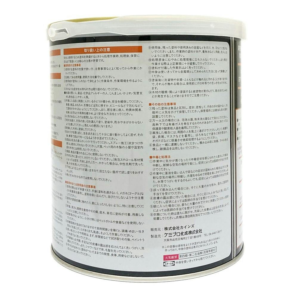 ●変色も少なく耐候性が良好です。●防蟻・防虫効果および防腐・防カビ効果を発揮します。●木部に深く浸透し、木目と木肌を生かした透明感のあるカラー着色が得られます。