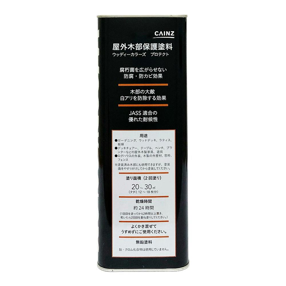 ●木材保護を目的に設計されたJASS18 M-307適合木部専用塗料です。●変色も少なく耐候性が良好です。●防蟻・防虫効果および防腐・防カビ効果を発揮します。●木部に深く浸透し、木目と木肌を生かした透明感のあるカラー着色が得られます。