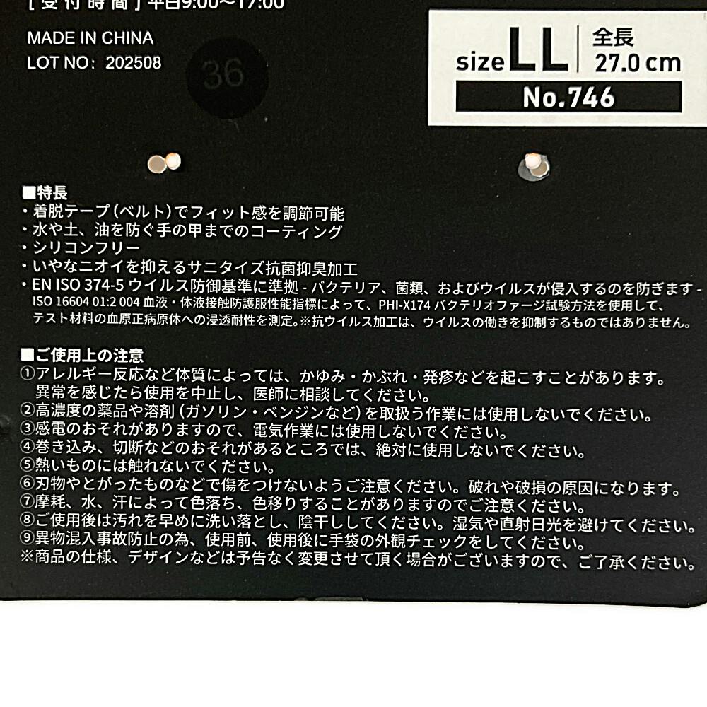 ●アレルギー反応などの異常を感じたら使用を中止してください。●高濃度の薬品や溶剤、高温、電気作業には使用しないでください。●巻き込み、切断等の恐れがある場所では使用しないでください。●使用後は汚れを早めに洗い落とし、湿気を避けて陰干ししてください。