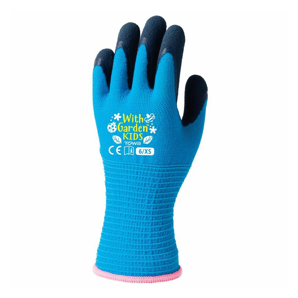 トワロン 天然ゴム背抜き手袋 ウィズガーデンキッズ アクアブルー XS W382