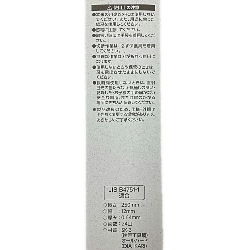 ●本来の用途以外には使用しないでください。また、用途に合った鋸刃を使用してください。●感電に注意してください。●取扱い時には手袋を着用してください。●切断作業は必ず保護具を着用してください。●無理な作業は刃が折れる原因になります。等