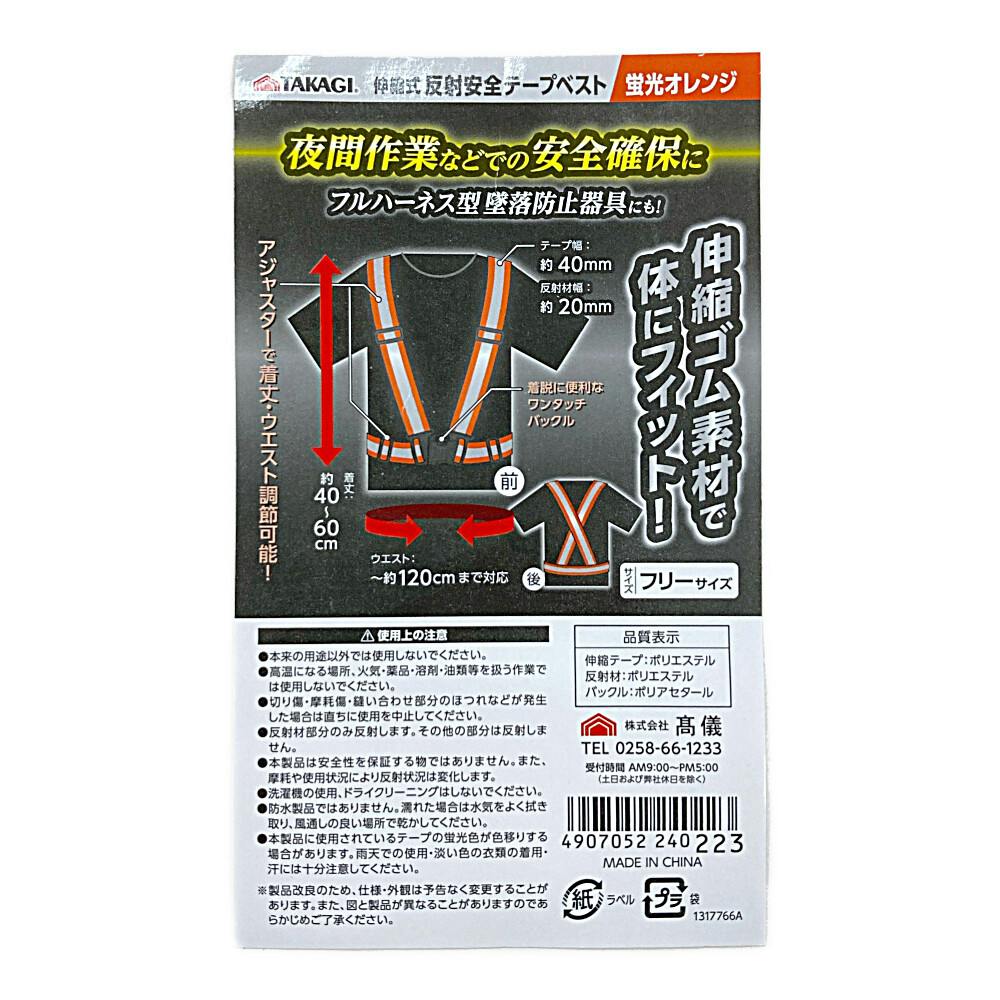 TAKAGI 伸縮式反射安全テープベスト 蛍光オレンジ