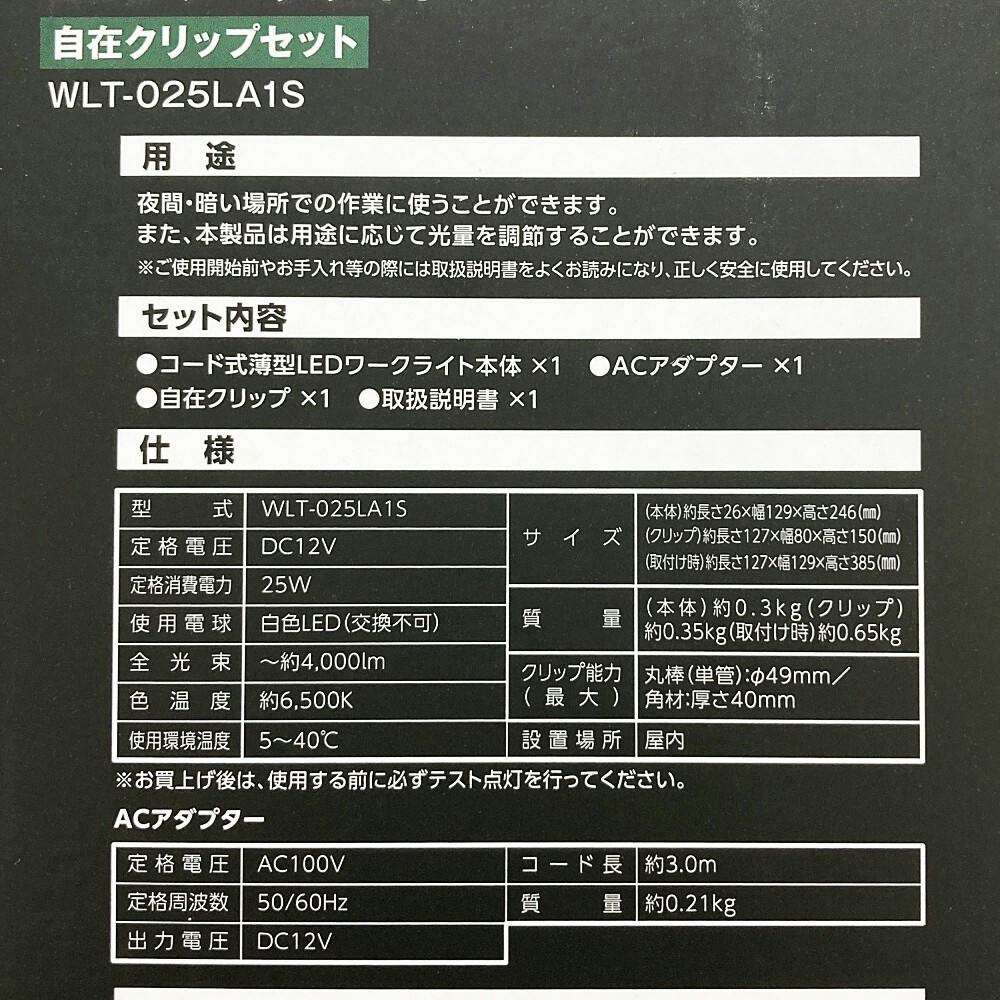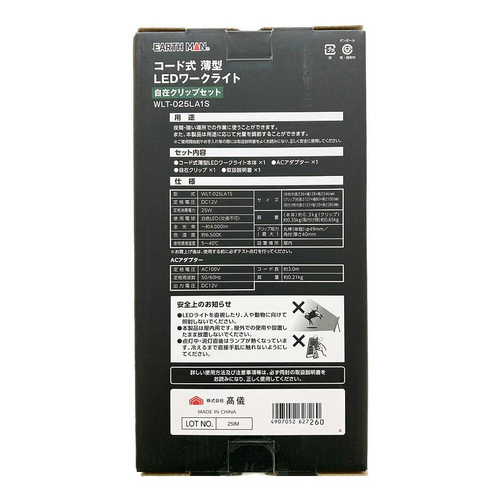 ●コード式薄型LEDワークライト本体×1 ●ACアダプター×1 ●自在クリップ×1 ●取扱説明書×1