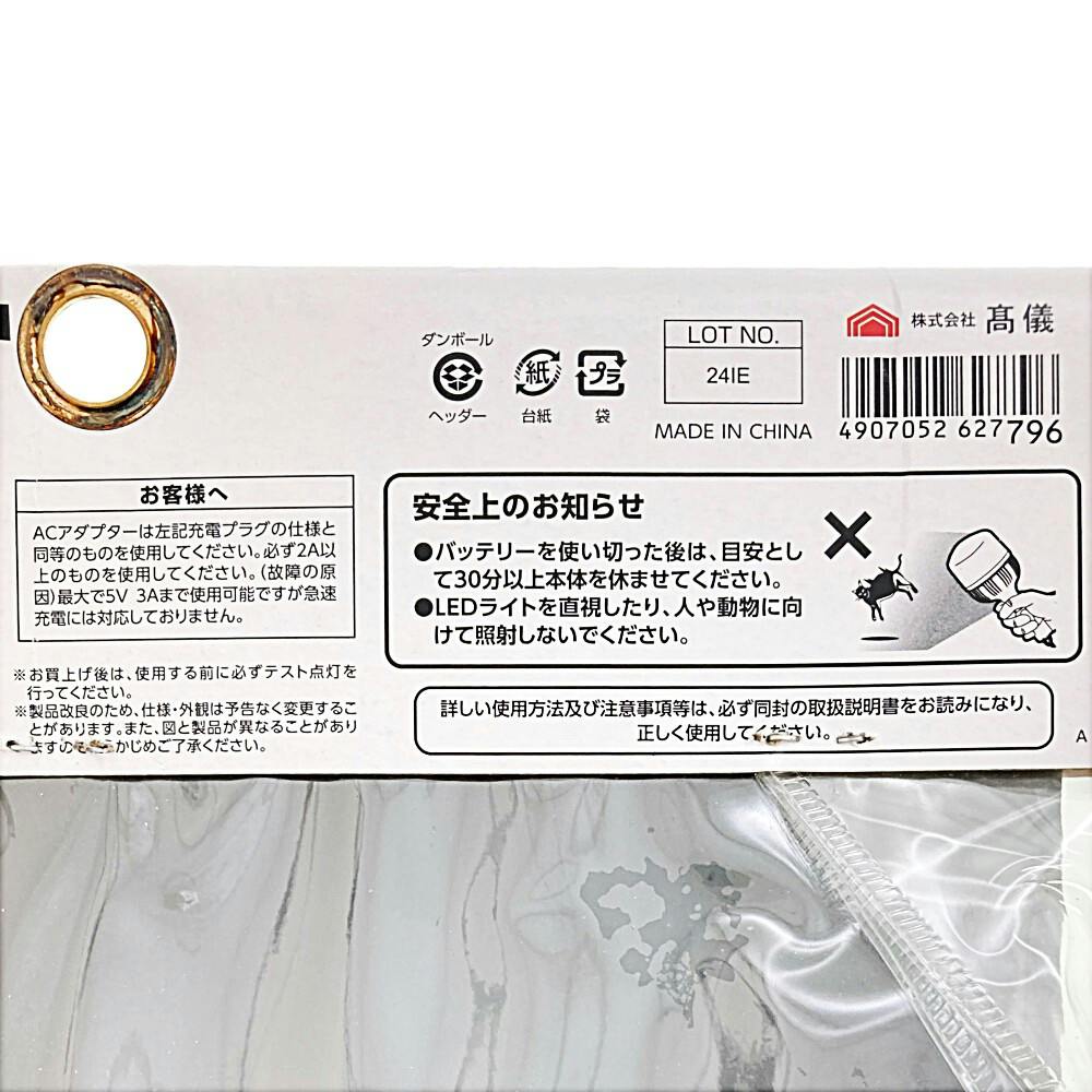充電式LEDマルチハンドライト本体×1、USBケーブル(TypeC)×1、取扱説明書×1