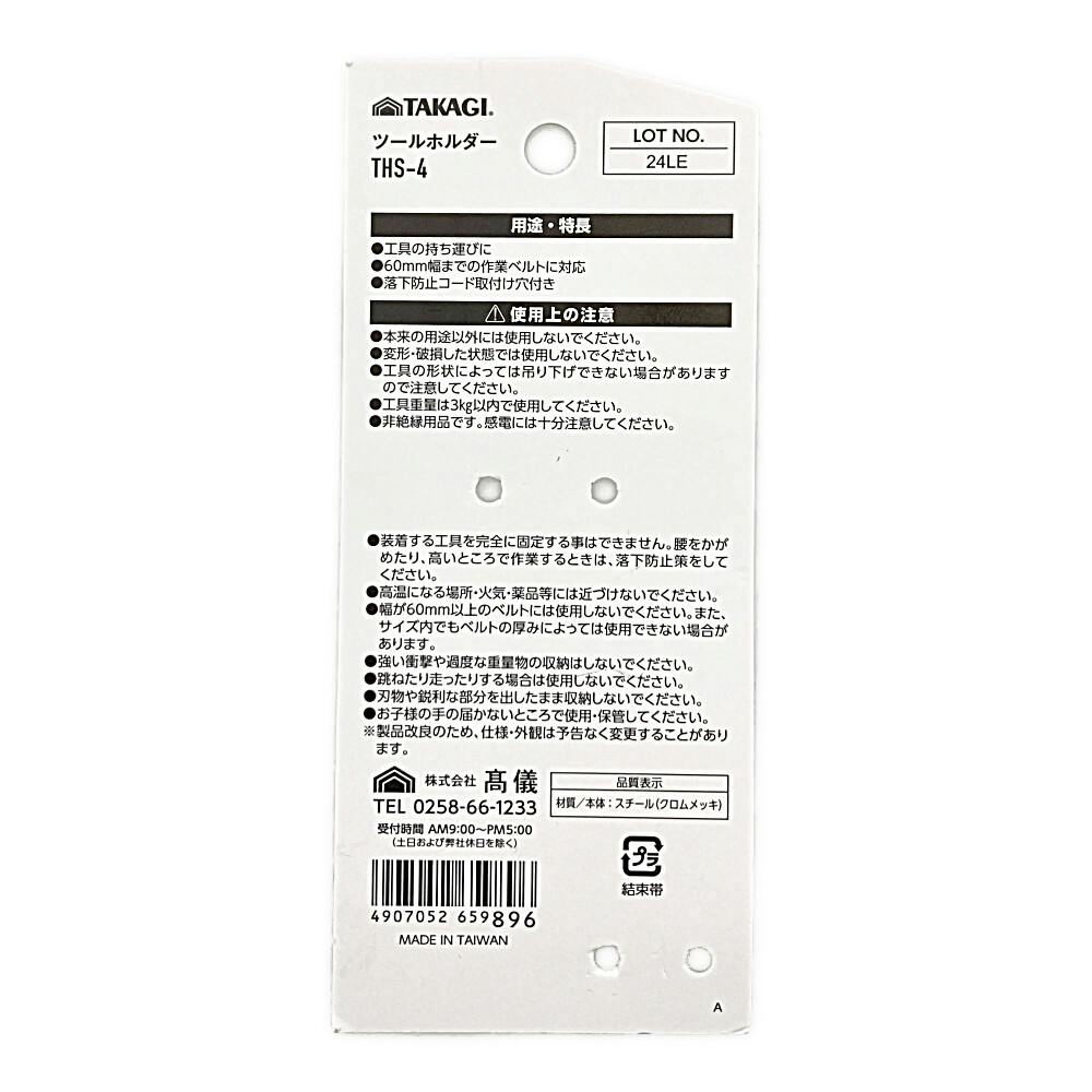 ●60cmまでの作業ベルトに対応 ●落下防止コード取付け穴付き ●両口ラチェットレンチの吊り下げに ●スチール製で高耐久・高強度