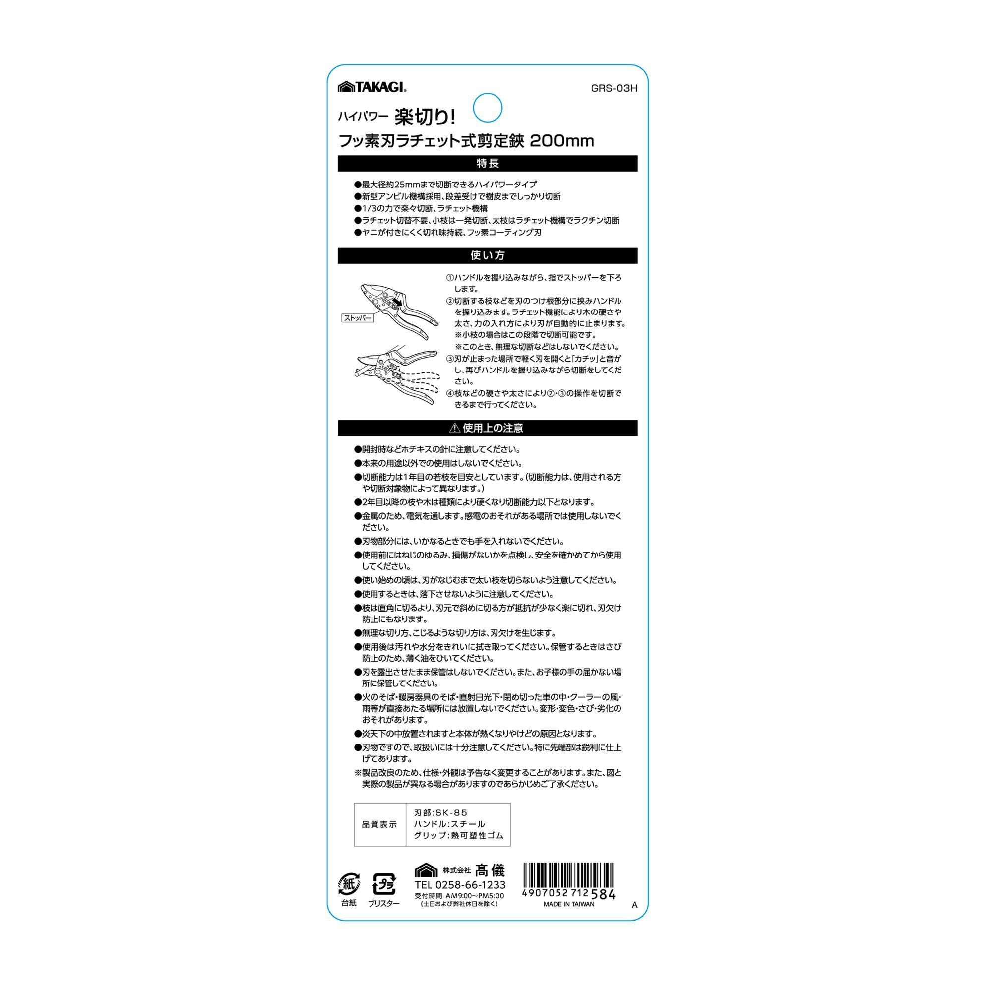 TG ハイパワーラチェット式剪定鋏