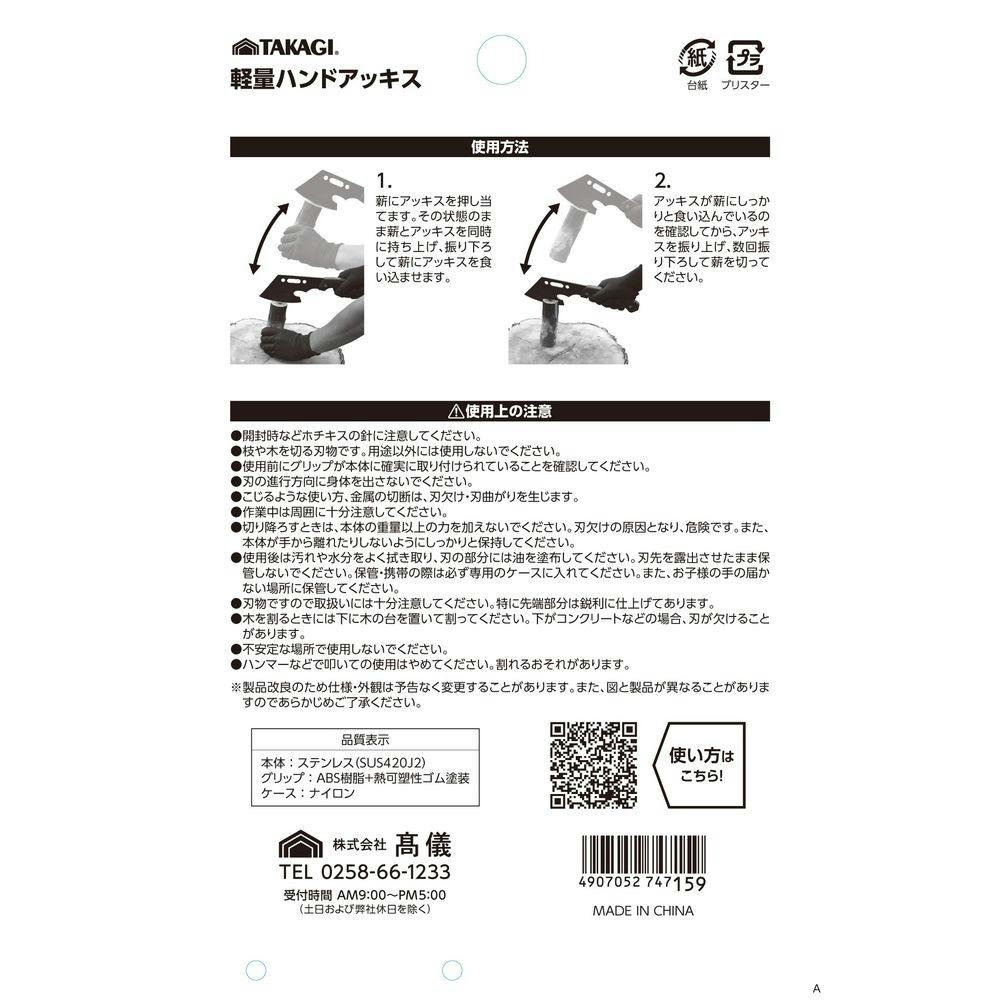●枝や木を切る刃物です。用途以外には使用しないでください。 ●使用前にグリップが本体に確実に取り付けられていることを確認してください。 ●刃の進行方向に身体をださないでください。●その他、パッケージ裏面参照の上、ご使用ください。