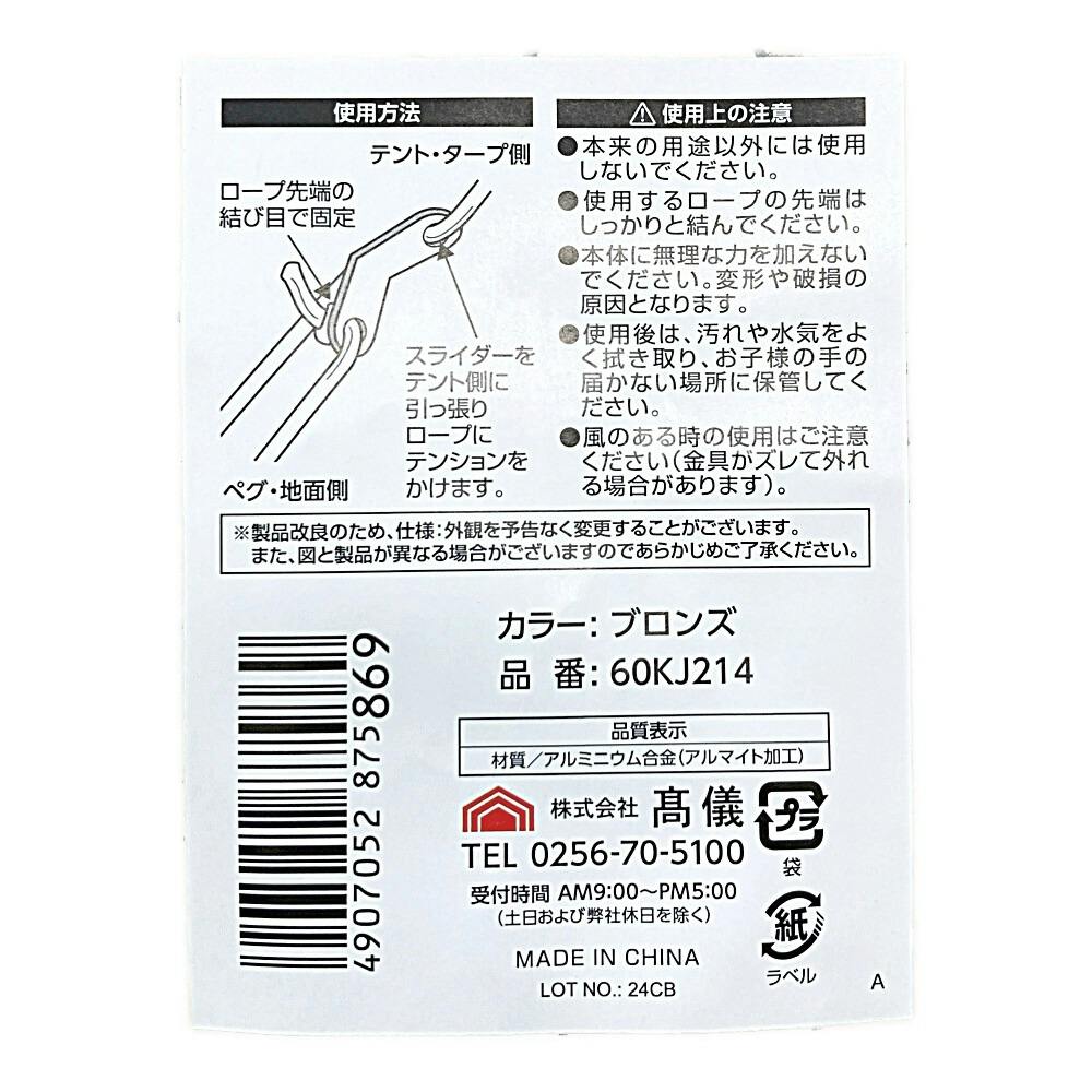 • KANUCHI ROPE SLIDER ロープスライダー(自在金具) 2穴 ブロンズ 4個入