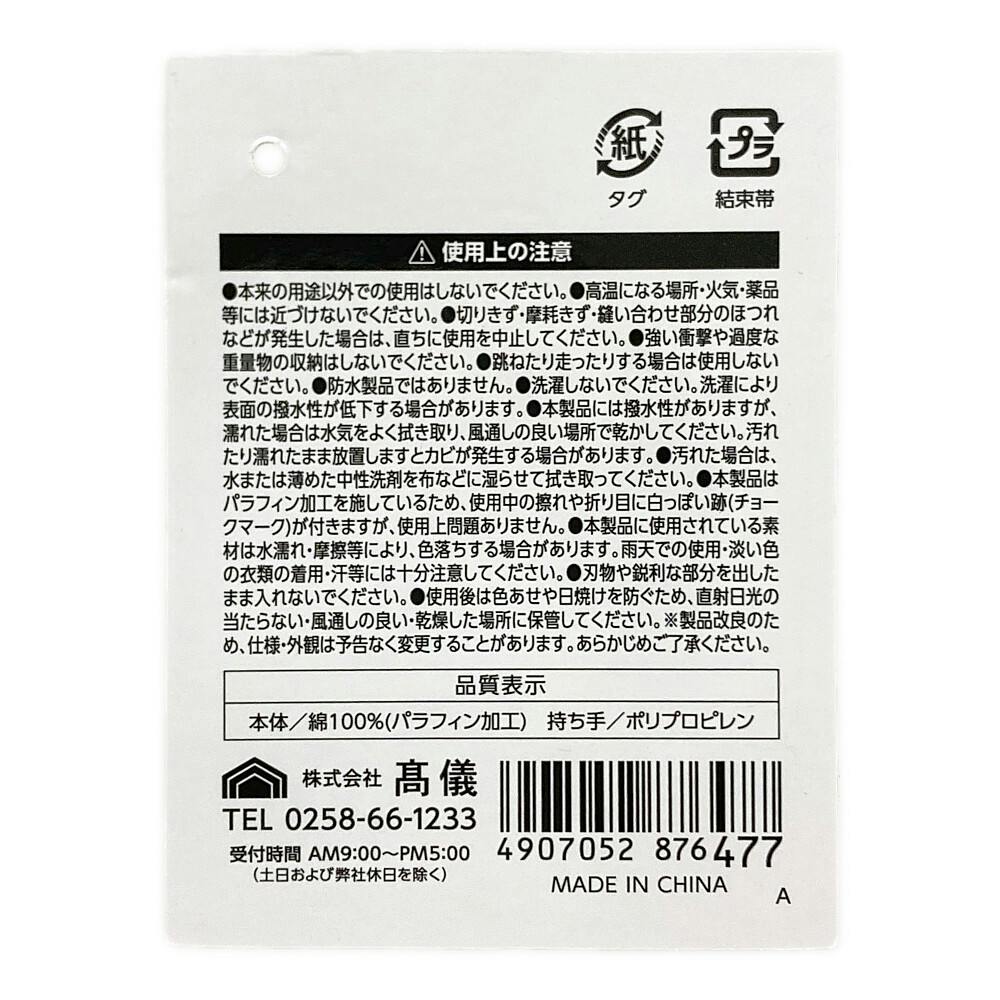 本体/綿:100%(パラフィン加工)、持ち手/ポリプロピレン