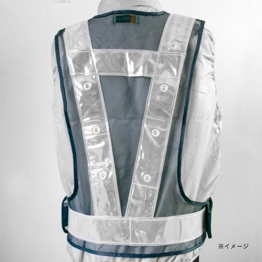 ●高反射材+高輝度LEDで視認性抜群●前開き防止ベルト付き●サイド調整用マジック付き●電源スィッチポケット付き●ポリエステルメッシュで通気性あり●電飾:LED16個(単3電池2本使用)約130時間使用可能●テープ幅60mm