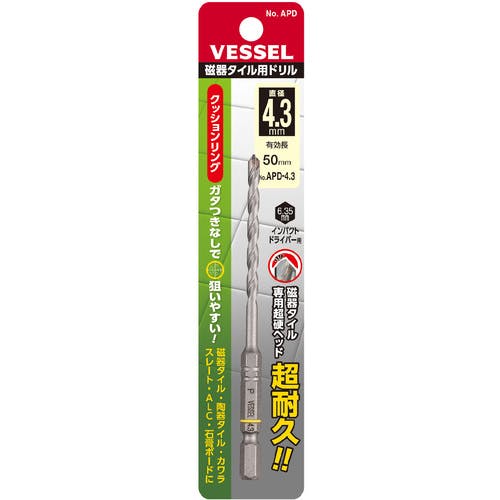 【CAINZ-DASH】ベッセル 磁器タイル用ドリル APD ドリル径:4.3mm 有効長:50mm APD-4.3【別送品】