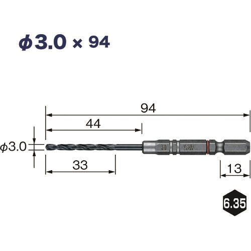 【CAINZ-DASH】ベッセル クッションドリル(鉄工用)3本組 Φ3.0 全長98mm AMD3S-3.0【別送品】
