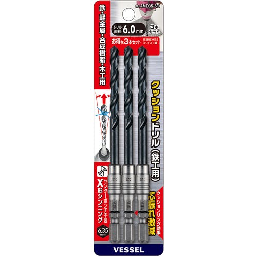 【CAINZ-DASH】ベッセル クッションドリル(鉄工用)3本組 Φ6.0 全長127mm AMD3S-6.0【別送品】