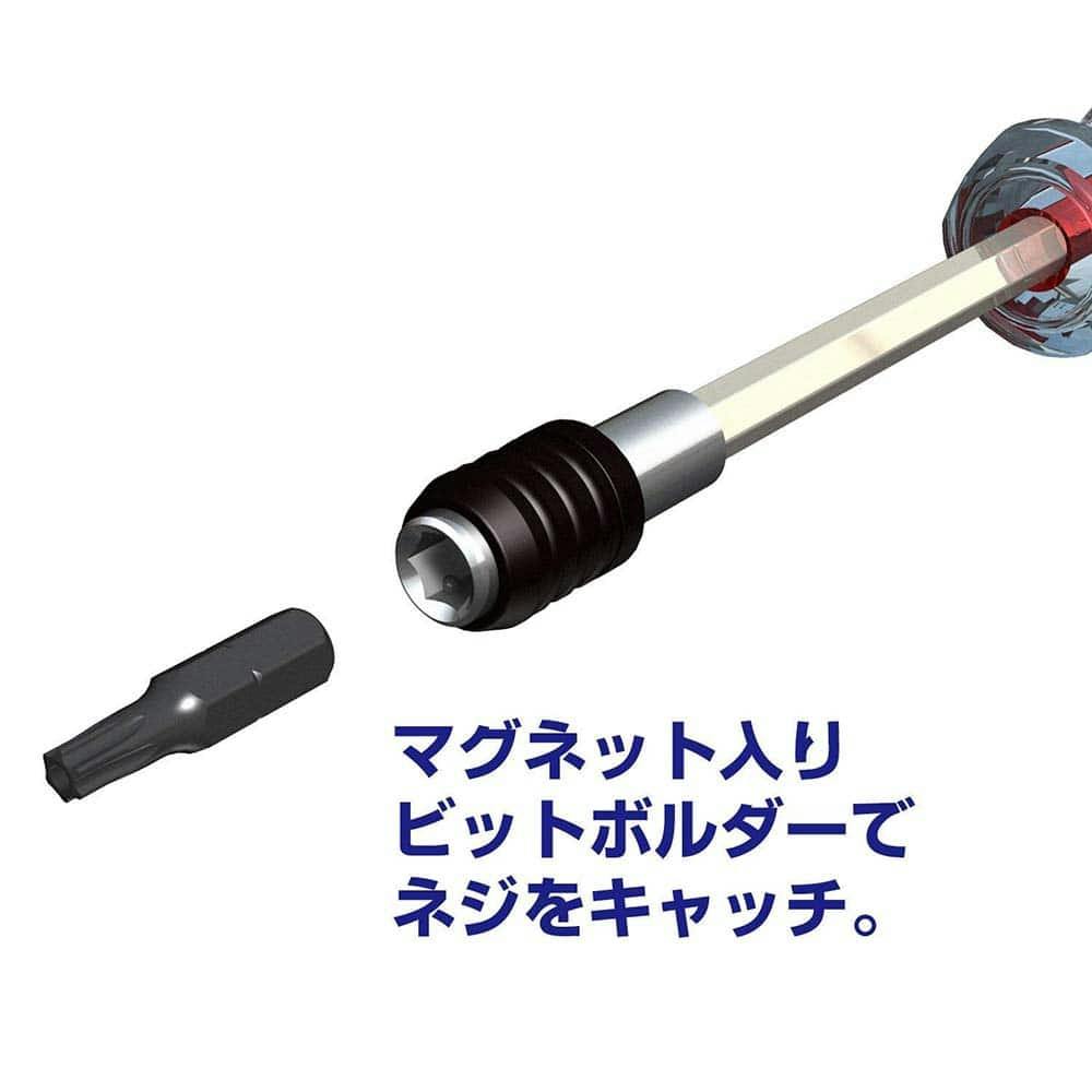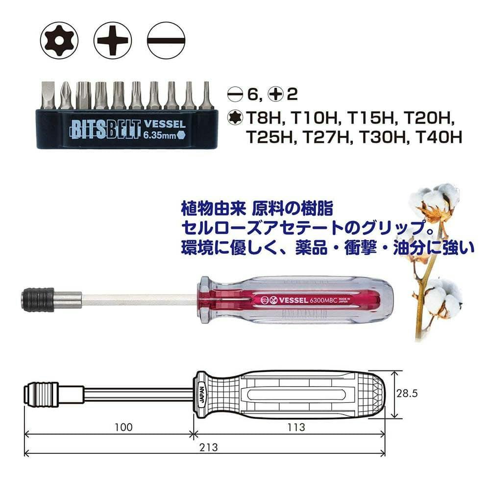 ●タンパープルーフネジ(いじり止め付きネジ)に対応。●ビットを確実に固定する新方式ビットホルダー。●ビット差込部六角対辺6.35mm。●柄はセルロースアセテート樹脂使用。