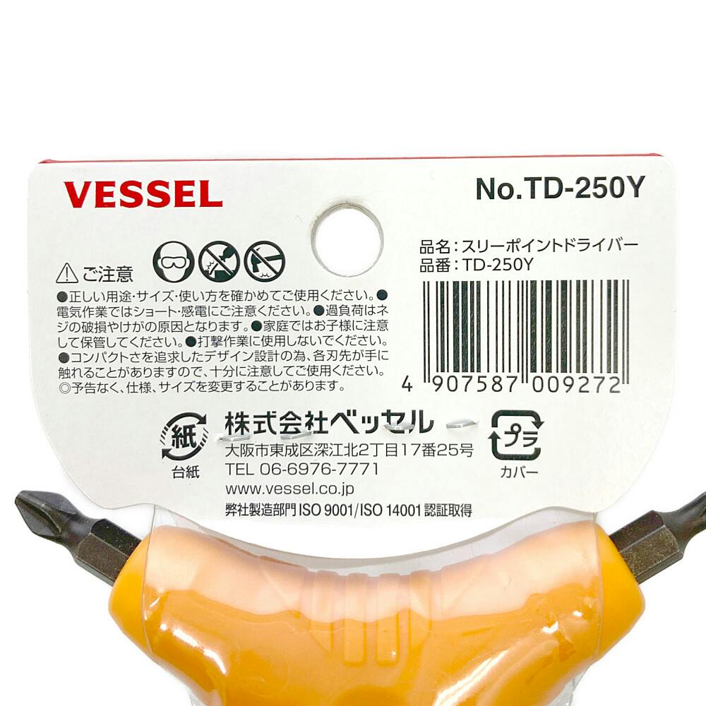 • ベッセル VESSEL スリーポイント プラスドライバー TD-250Y