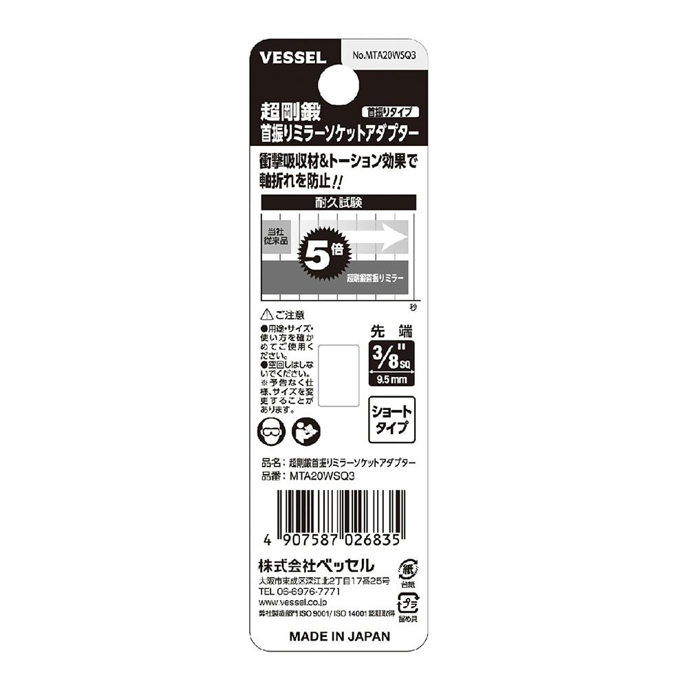 ベッセル VESSEL 超剛鍛首振りミラーソケットアダプター ソケット差込角3/8(9.5mm) ショート MTA20WSQ3