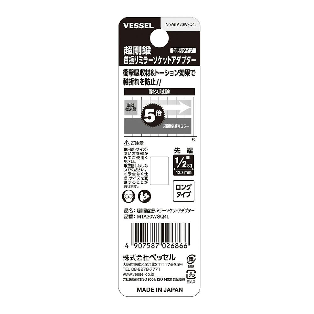 ベッセル VESSEL 超剛鍛首振りミラーソケットアダプター ソケット差込角1/2(12.7mm) ロング MTA20WSQ4L