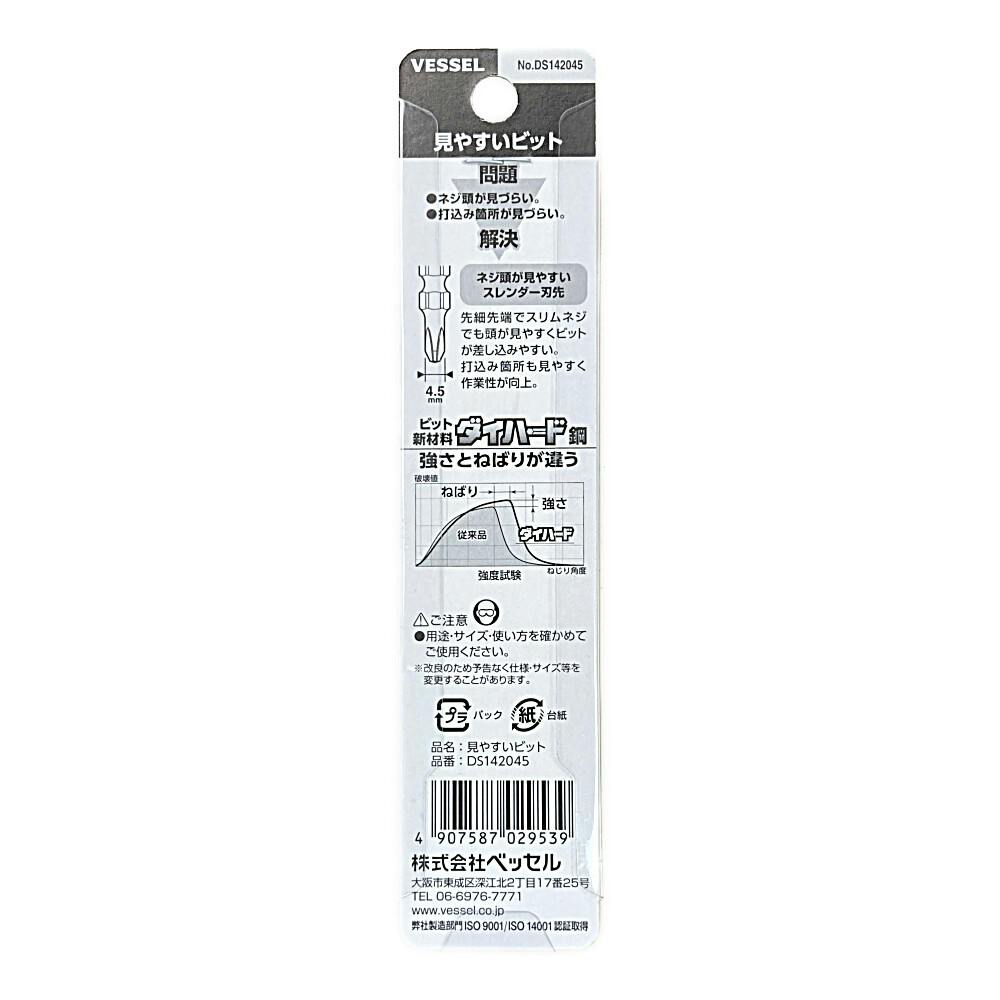 ベッセル VESSEL 見やすいビット 両頭 +2×45mm DS142045 2本組