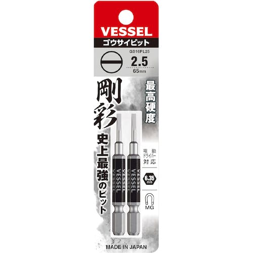 【CAINZ-DASH】ベッセル 剛彩ビット 2本組 (片頭) -2.5×65mm GS16PL25【別送品】