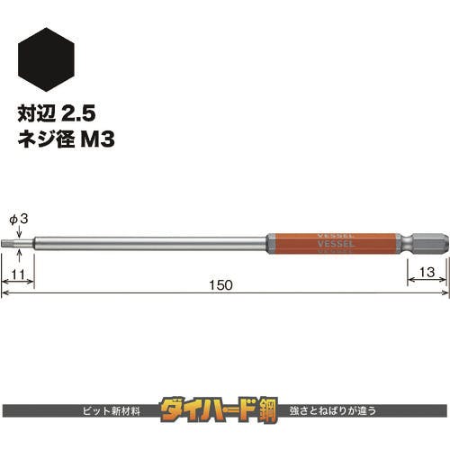 【CAINZ-DASH】ベッセル 剛彩ビット (片頭ヘックス) 対辺2.5×150mm GSH025L【別送品】