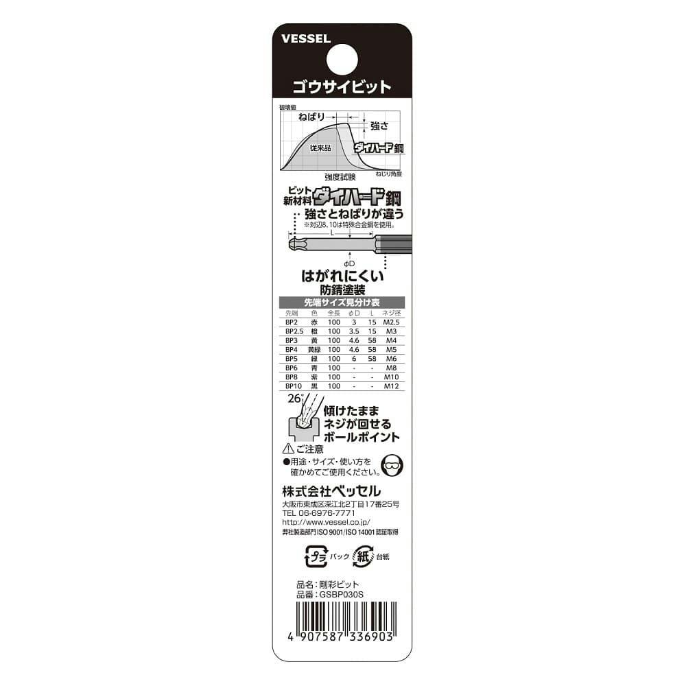 ベッセル VESSEL 剛彩ビット 片頭ボールポイント GSBP030S BP3×100mm 1本